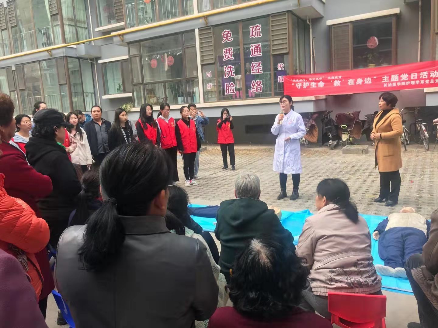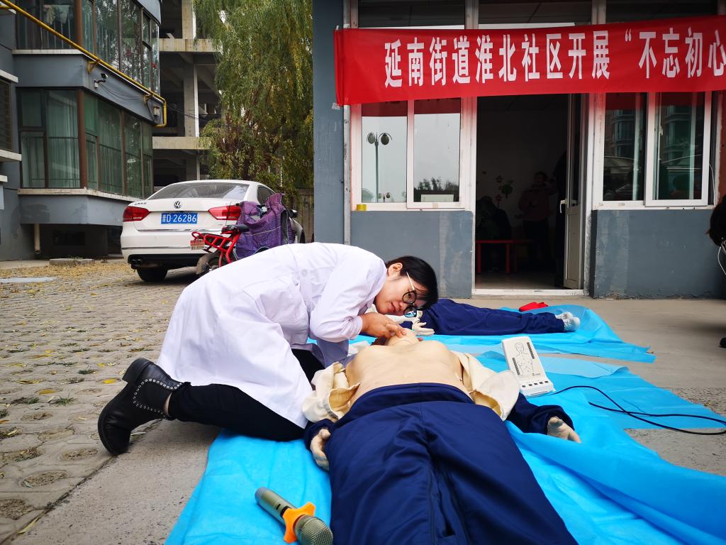 为提高社区区居民的应急救护水平,提高居民应急处置能力,积极践行“不忘初心,牢记使命”主题教育思想,深入落实服务基层,服务区域社会的使命担当,11月7日下午,护理学系党总支带领南丁格尔志愿者服务队beat365APP支队的同学于淮北社区服务中心开展“守护生命、‘救’在身边”主题党日活动。护理学系党总支副书记张晓霞、综合办公室主任王晋平、教工党支部书记赵文婷、部分教工党员和员工党员以及南丁格尔志愿服务队同学参与活动。