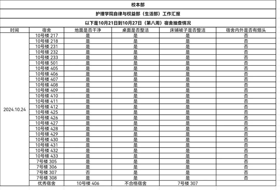 现公示第八周(10月21日-10月27日)beat365唯一官网员工会生活部查寝情况