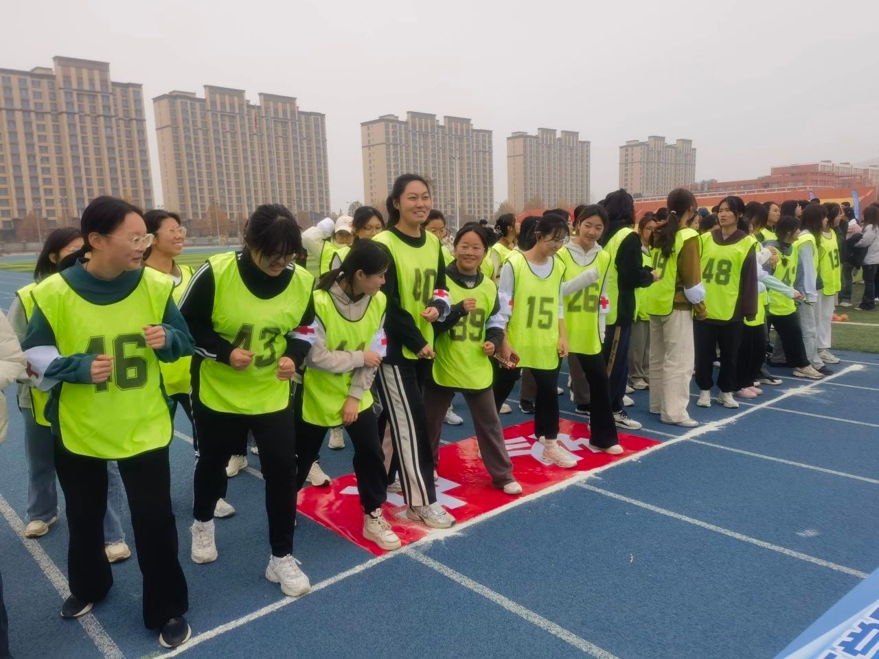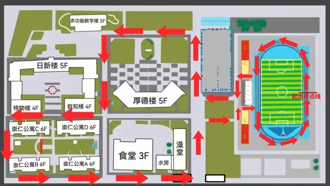 本次比赛在五龙校区精心设计了2公里的跑步路线,采用了接力跑的方式,传递红十字袖章,融入了医学元素。每支队伍由2男2女组成,每棒队员需完成2公里的距离,既考验耐力,又兼顾安全性。