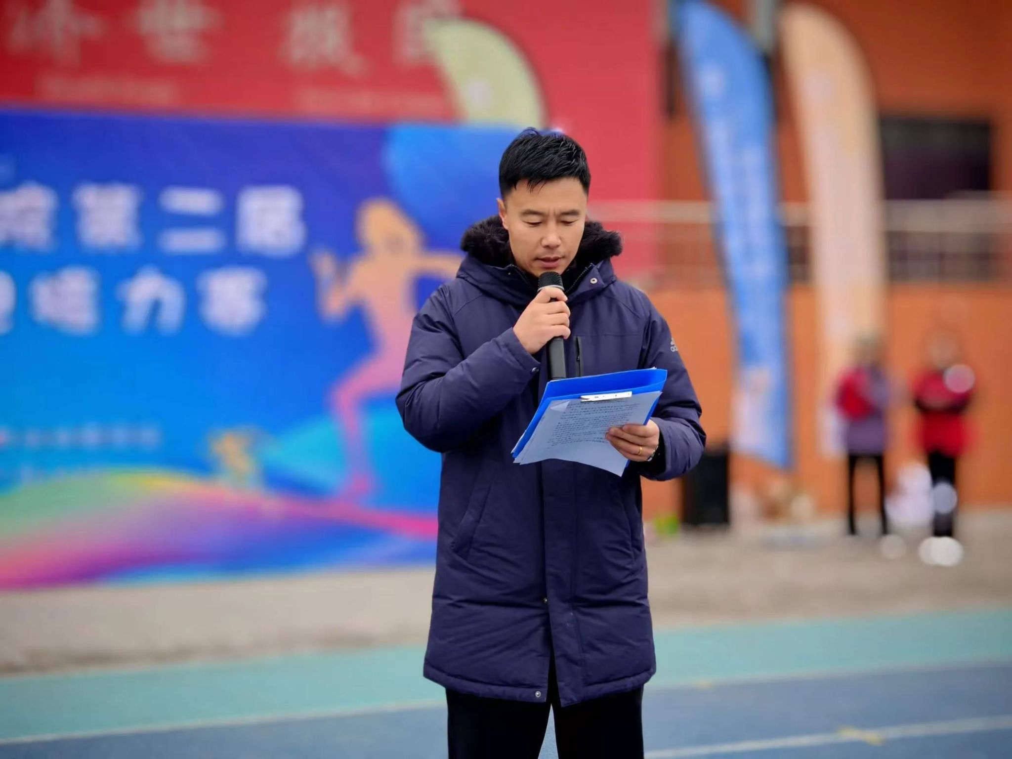 晨曦出露,虽然天气寒冷,但参赛队员热情丝毫未减。开幕式上,公共体育教学部副主任赵岩老师致辞,勉励所有参赛者以最佳状态迎接挑战,展现青春风采。