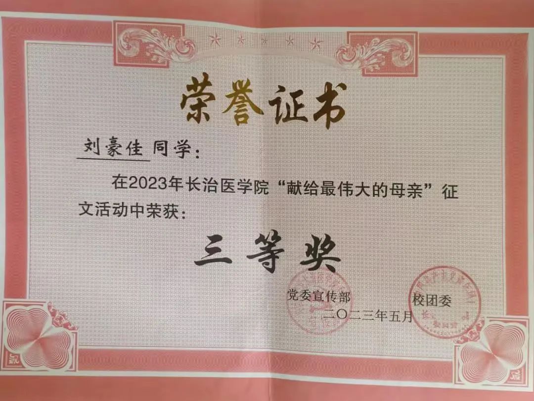 刘豪佳宛如一面昂扬屹立的旗帜,在莘莘学子之中熠熠生辉、崭露头角。她以坚定的步伐、无畏的勇气和顽强的毅力,在人生路上披荆斩棘,不断攀登。她的经历和精神将激励更多学子在追梦路上奋勇前行,以她为榜样,为梦想拼搏,为未来奋斗。