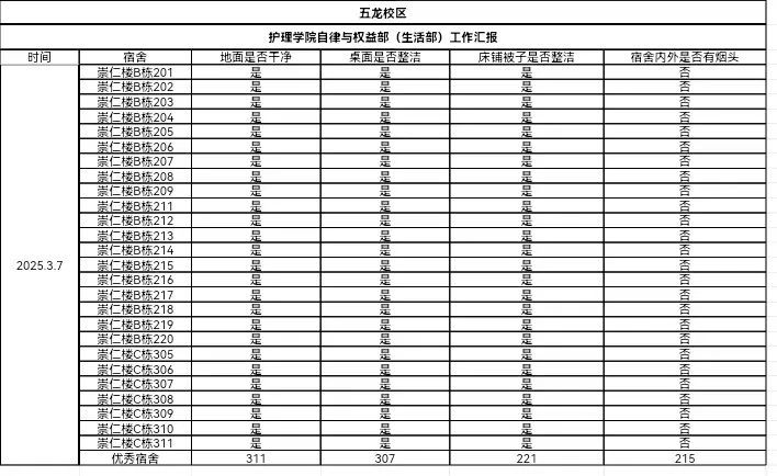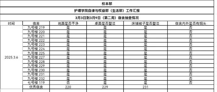 现公示第二周(3月3日-3月9日)beat365唯一官网员工会生活部查寝情况