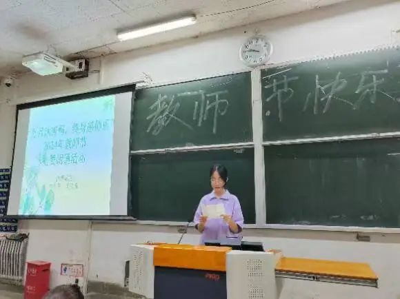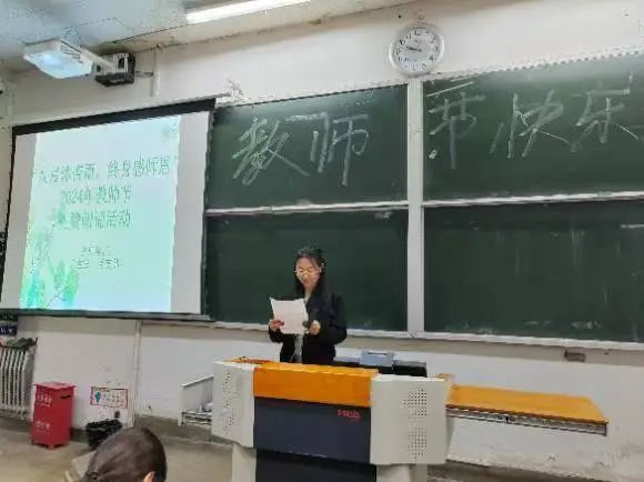 郝耀琴:在这个充满智慧与启迪的殿堂里,教师们以无私的奉献和无尽的热情,点燃了求知的火花,引领我们探索世界的奥秘。他们不仅是知识的传递者,更是品格的塑造者,用生命的智慧和情感的温度,温暖着每一个渴望成长的心灵。在此,我们向所有的教师致以最崇高的敬意,感谢您们为培育未来的花朵所付出的辛勤努力和无私奉献。您们的教诲如同星辰,照亮了我们前行的道路,您们的关怀如同春风,抚慰了我们成长的烦恼。在这个特别的日子里,我们向您们致以最诚挚的祝福,愿您们身体健康,工作顺利,幸福安康。您们的伟大,将永远被铭记在每一个受惠于您的学子心中。