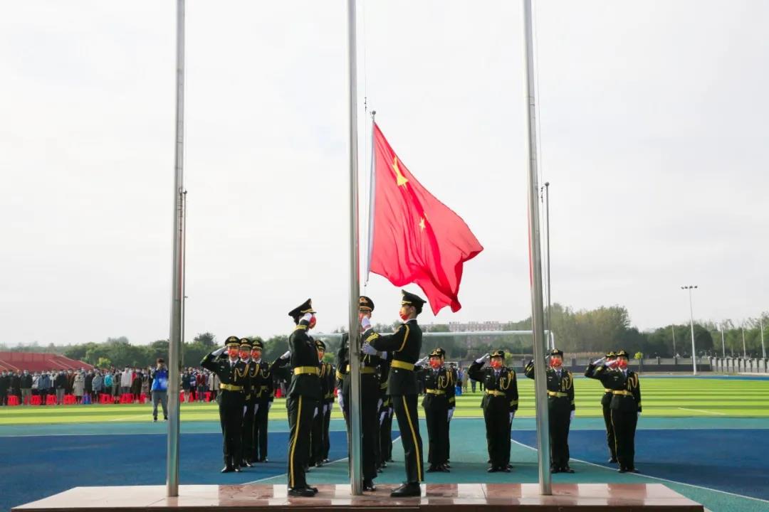 激昂雄壮的国歌声中,全体师生肃立注目,五星红旗冉冉升起,开学典礼正式开始。