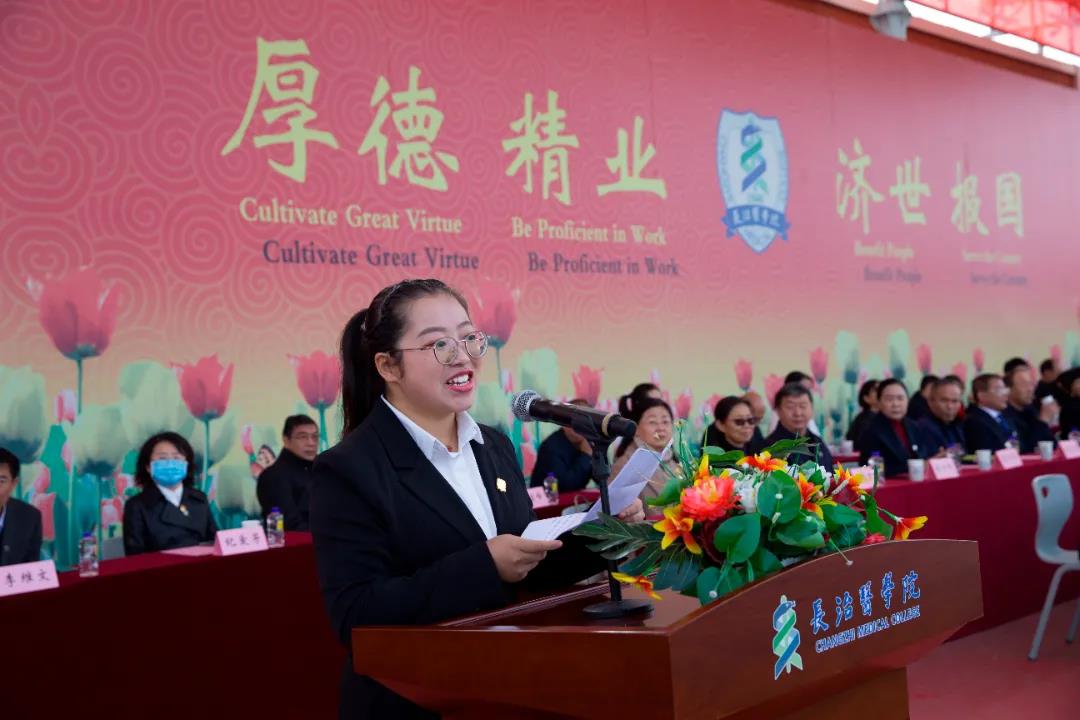 超声医学专业硕士研究生侯烜宁同学、第一临床学院郭思雨同学分别代表2021级硕士研究生、本科生发言。她们表示,要像老一辈革命家一样“为中华之崛起而读书”,从百年党史中汲取智慧和力量,传承长医“三大精神”,在感悟时代、紧跟时代、引领时代的新际遇中提升素质和能力,用实际行动践行“强国有我、请党放心”的铮铮誓言,为实现伟大复兴的中国梦贡献青春力量。