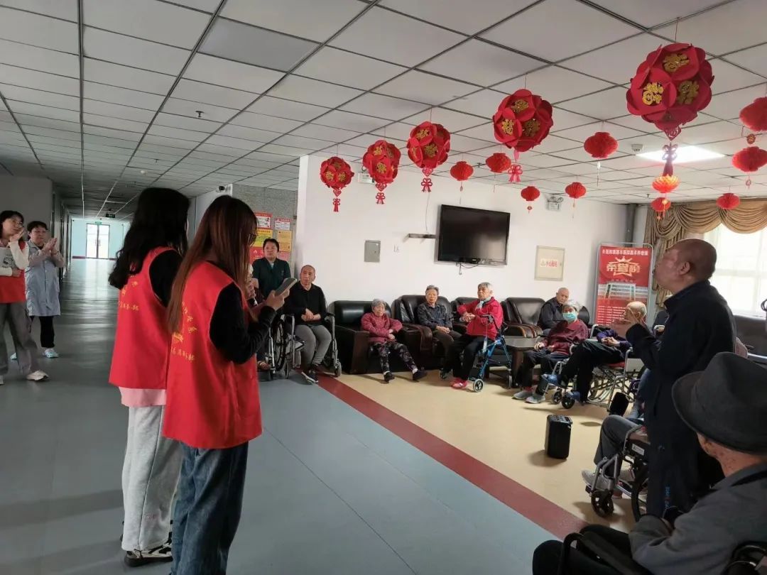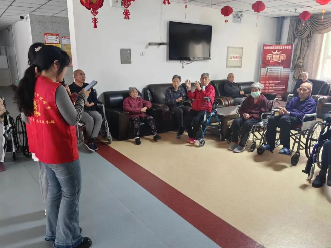 歌曲演唱、舞蹈表演、深情朗诵……一个个精心准备的节目,为老人们带来了别样的欢乐与暖心的关怀,志愿者们用满腔真诚与热情,为老人们传递温暖与爱心。现场充满了欢声笑语,呈现出一片温馨祥和的景象。随后,志愿者们还耐心询问老人的身体状况,并给予健康建议。最后,老人们和志愿者一起热情高涨地传唱了《歌唱祖国》《太阳出来照四方》《我们走在大路上》等红歌,嘹亮的歌声重温激情燃烧的岁月,尽情地抒发出对党和祖国的热爱之情。