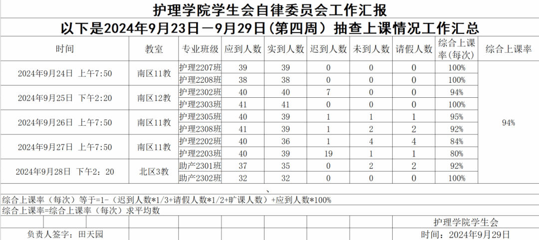 现公示第四周(9月23日-9月29日)beat365唯一官网员工会自律委员会查课情况。