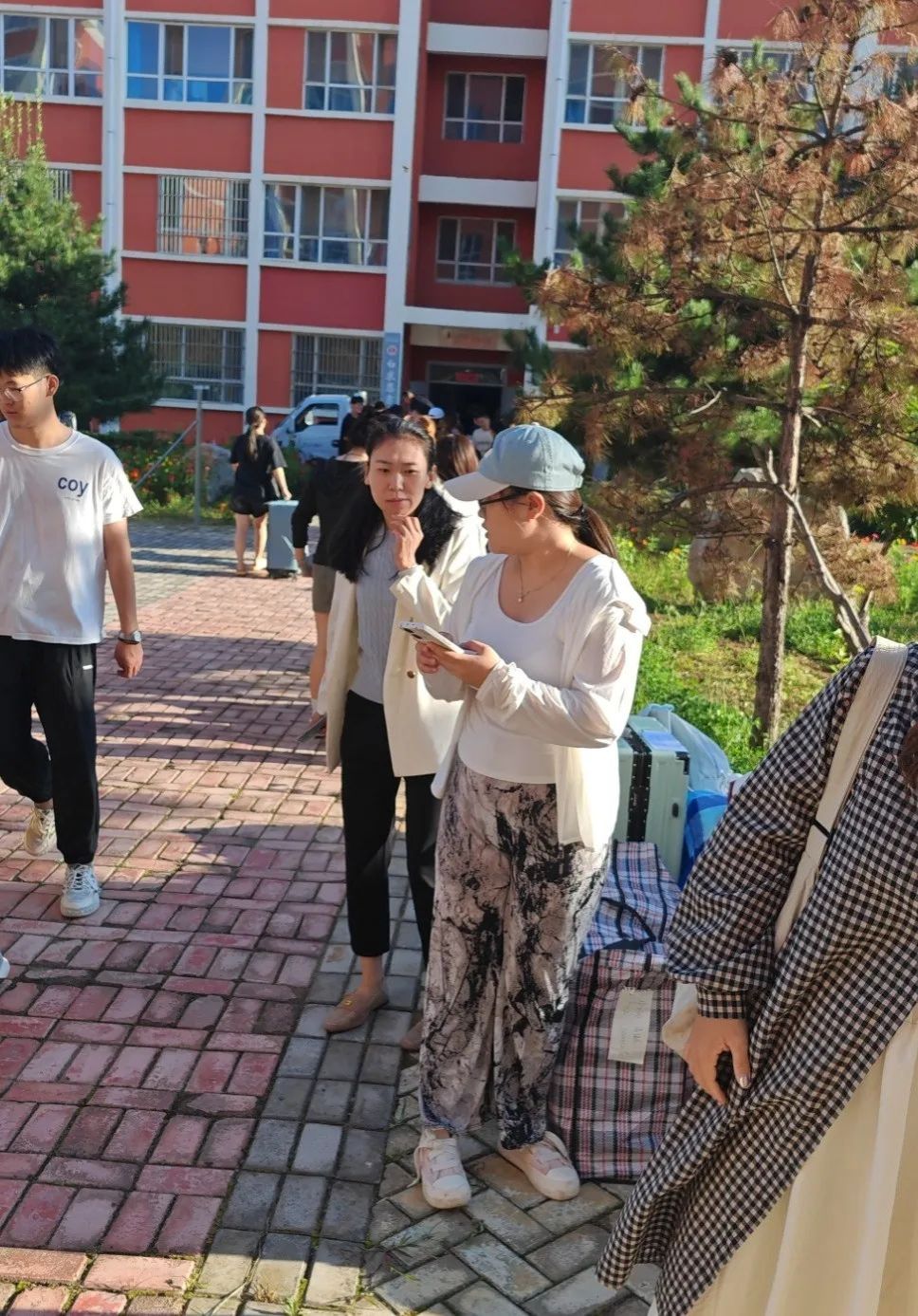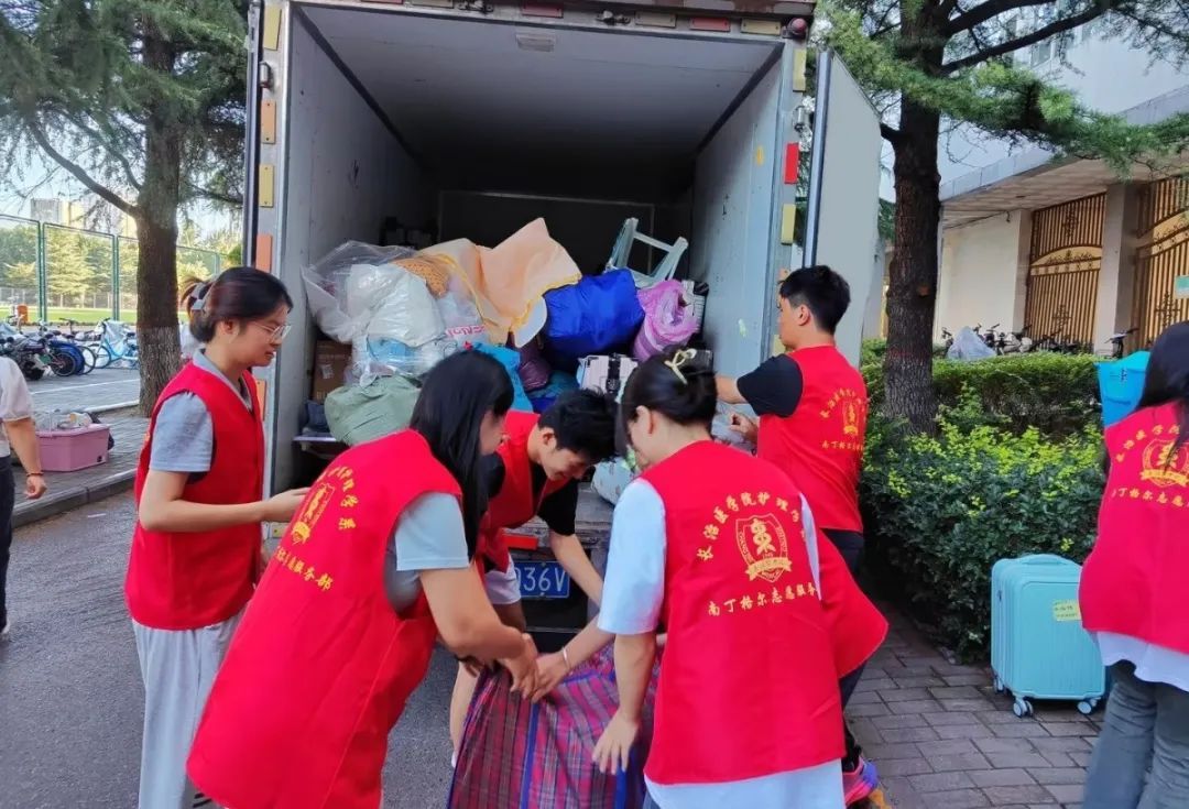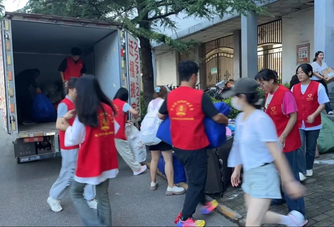 五龙校区,在同学之间相互帮助下,尤其是男同学参与下,行李装车高效完成,抵达潞州校区南区后,交接工作顺利进行,辅导员郝燕婷、王凯老师分别在7号楼和10号楼积极组织志愿者同学们无私奉献,帮助2023级同学们全部高效迁入目标宿舍。