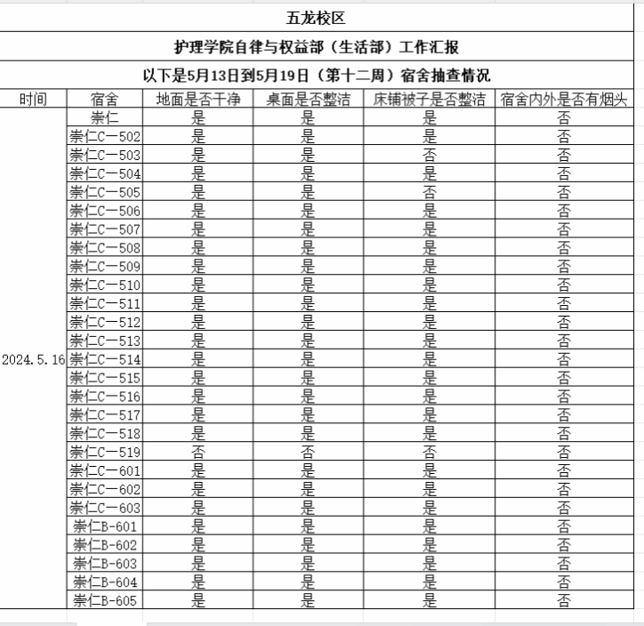 本周对校本部和五龙校区分别在5月15日和5月16日进行了查寝