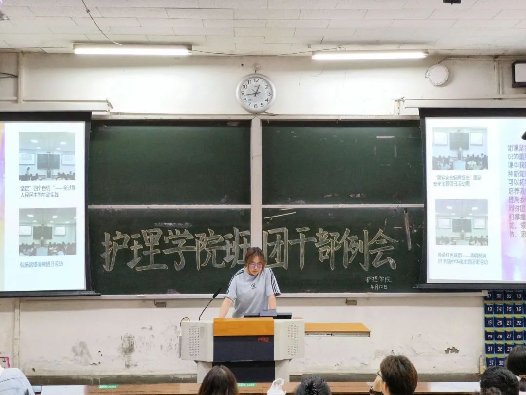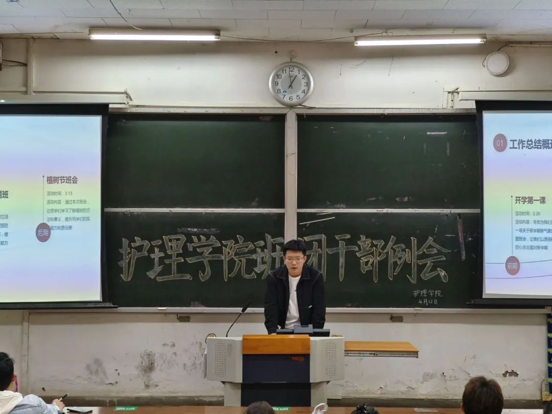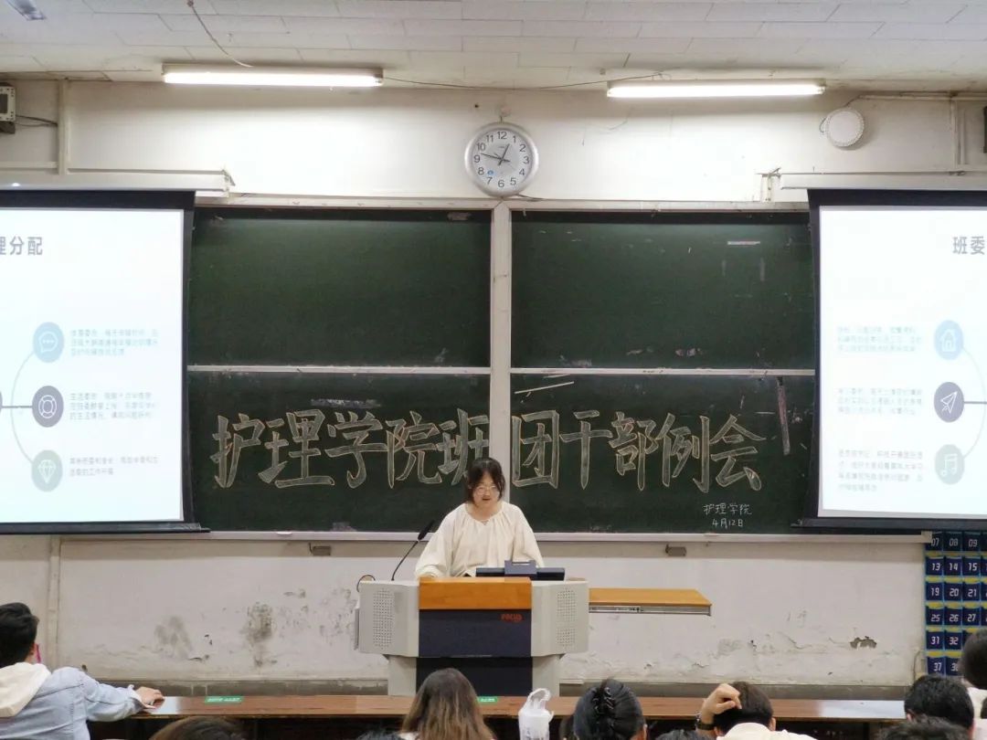 首先,2023级本科及专升本6位大教班长对开学以来员工工作进行汇报,并对未来发展提出规划;谢书记对近期重点工作进行梳理,强调各项活动要点,引导班团干部要善于发现同学们的特长,充分调动同学们参加活动的积极性,要求全体员工党员要充分发挥引领示范作用,紧密团结、依靠同学们为员工工作高质量发展作出贡献。