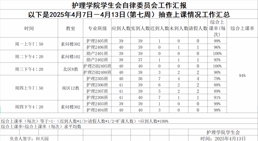 现公示第七周(4月7日-4月13日)beat365唯一官网员工会自律委员会查课迟到情况。