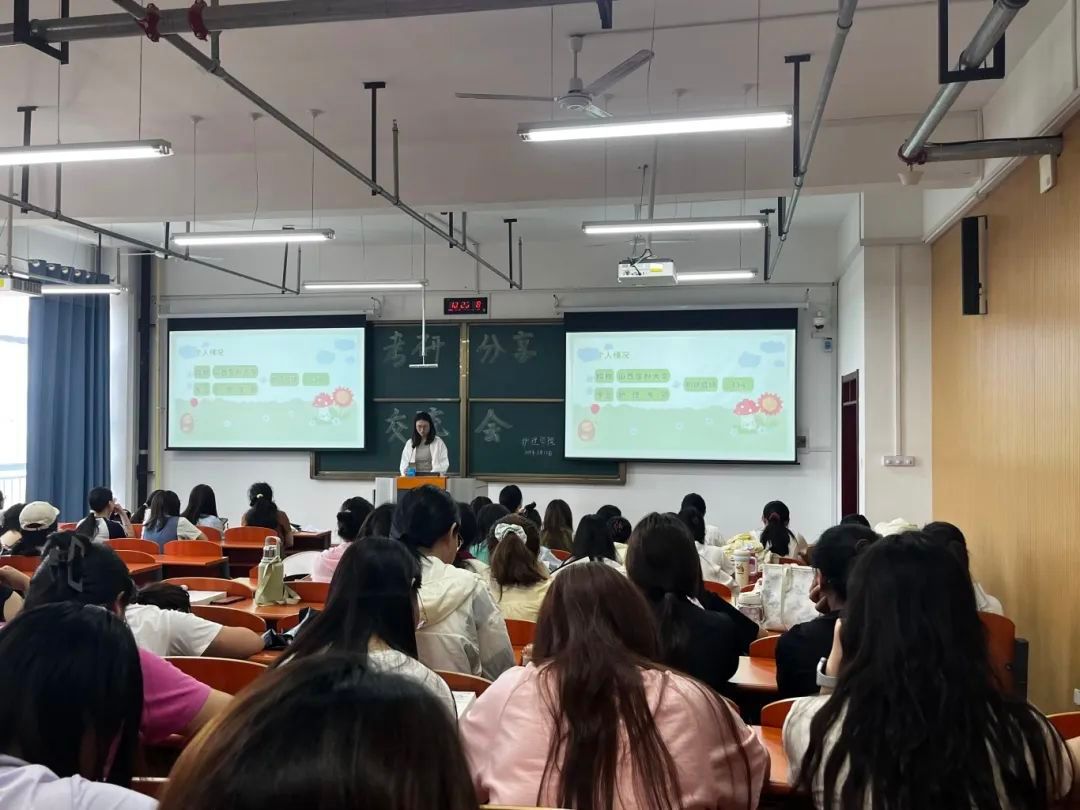 活动伊始,任雅静对四位分享同学进行介绍,并阐述了举办此次交流会的目的和意义。随后,在同学们热烈的掌声中,学姐依次上台就院校选择、时间安排、实习与学习的平衡以及学习方法方面做了交流分享。活动最后,任雅静对此次分享交流会进行总结,鼓励同学们明确目标、合理规划、坚持不懈,在考研征程中披荆斩棘,实现梦想。