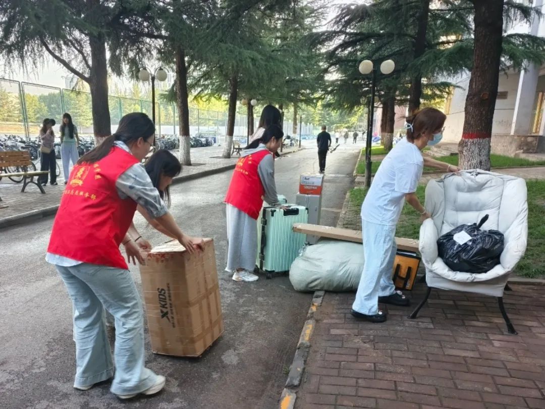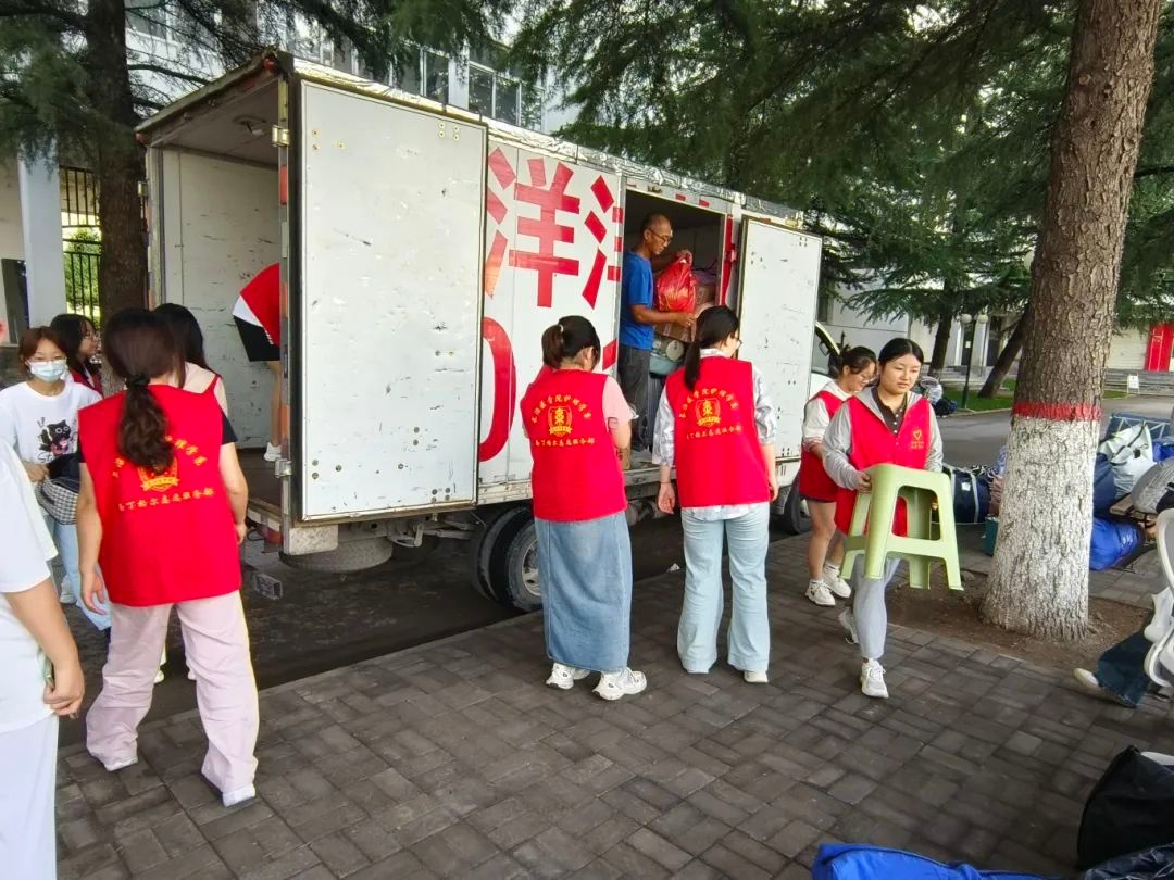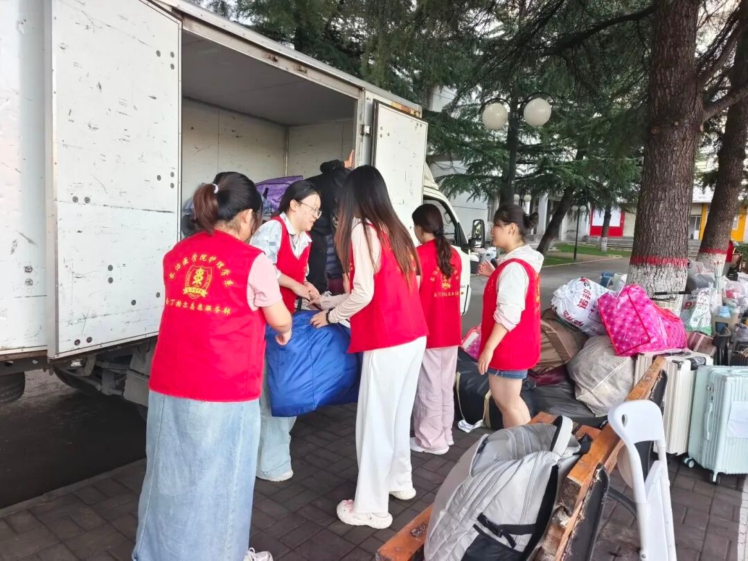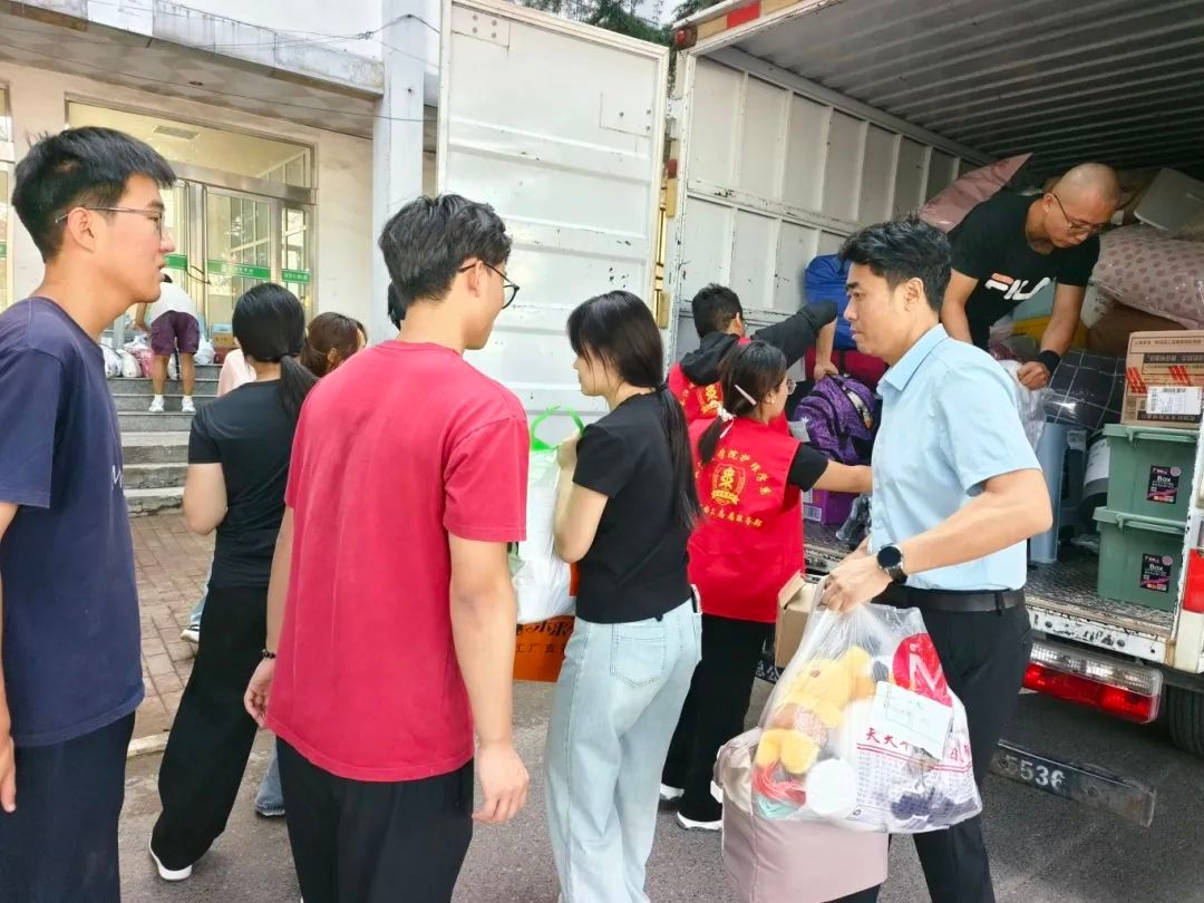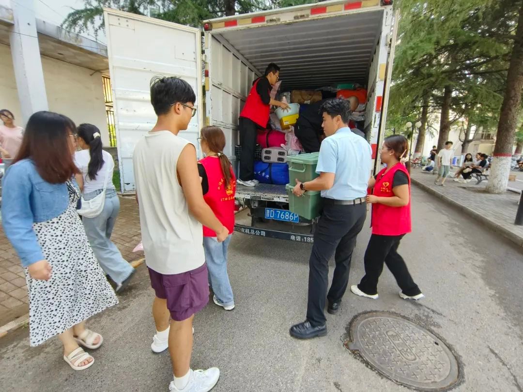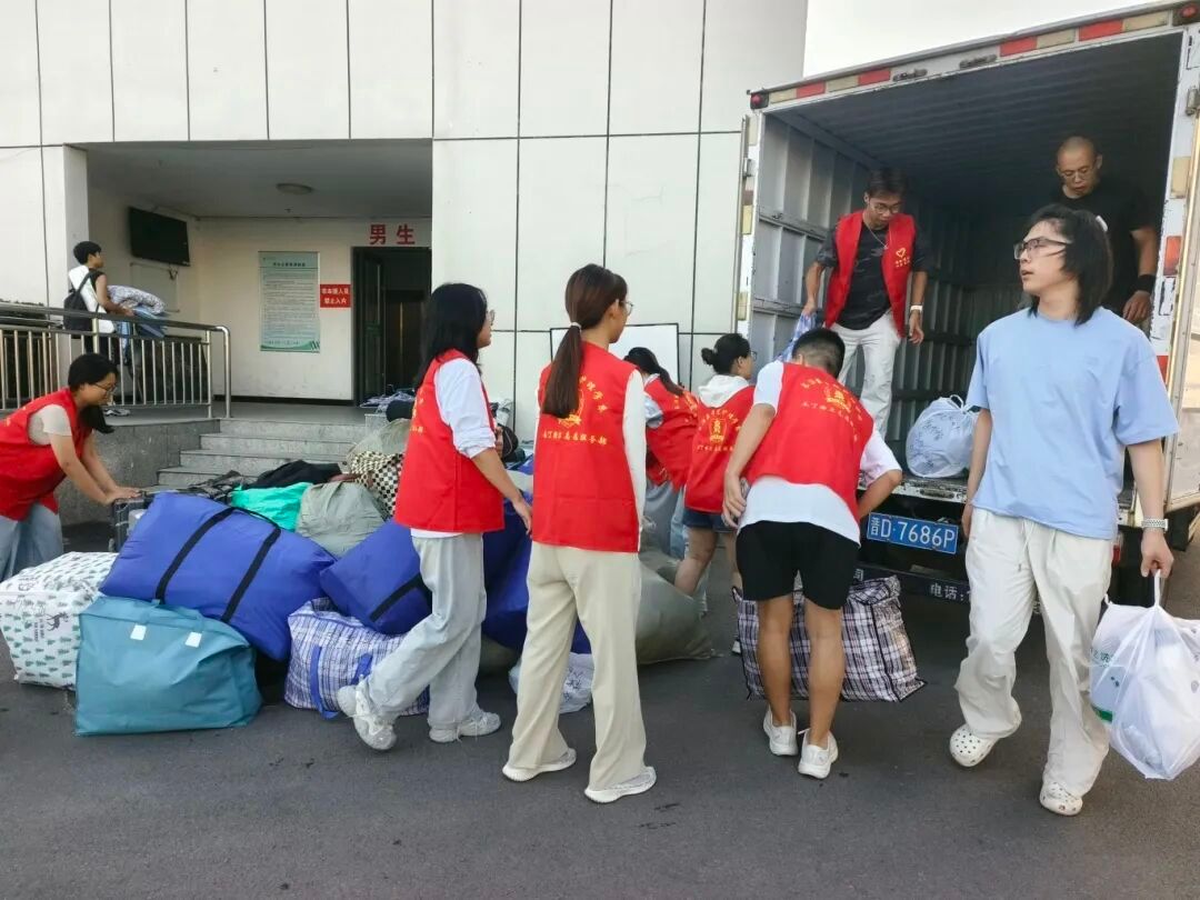 早上6点半,搬迁工作正式启动。学院领导与辅导员全程驻守现场,统筹协调各项事宜;志愿者与同学们分工协作、默契配合,高效完成行李装箱、物资运送、校区交接与宿舍整理等环节,确保学院2024级员工顺利入住。