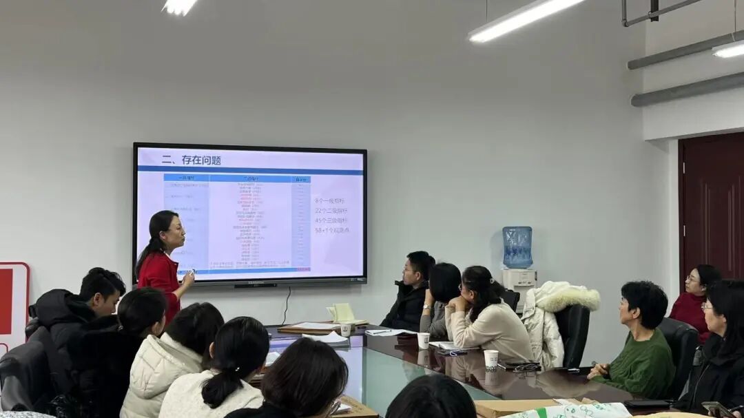 会议开始,陈爱香从学院整体层面对审核评估工作进展进行了系统汇报并对存在的问题进行剖析。她指出,在前期自评自建阶段,全院教师通力协作、高效落实,顺利完成自评报告编制工作。随后,她结合审核评估指标体系,逐一对标观测点进行深度分析,重点剖析了“一流专业建设成效不足”“一流课程建设举措待深化”“创新创业教育与人才培养融合度需提升”等关键扣分项,并针对问题根源提出改进方向。之后检查组对各教研室试卷归档情况进行了详细的检查。